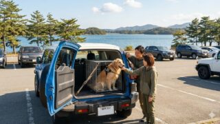 ランクルFJに愛犬を乗せる際の悩みを完全解決!後部座席の段差解消や防水シートでの抜け毛対策、荷室への大型犬ケージの安全な固定方法など、特有の車内環境作りを徹底解説。さらに、ランクルFJに愛犬を乗せてお出かけに最適な、福岡周辺の広い駐車場を持つSUV向けドライブ施設もご紹介します。